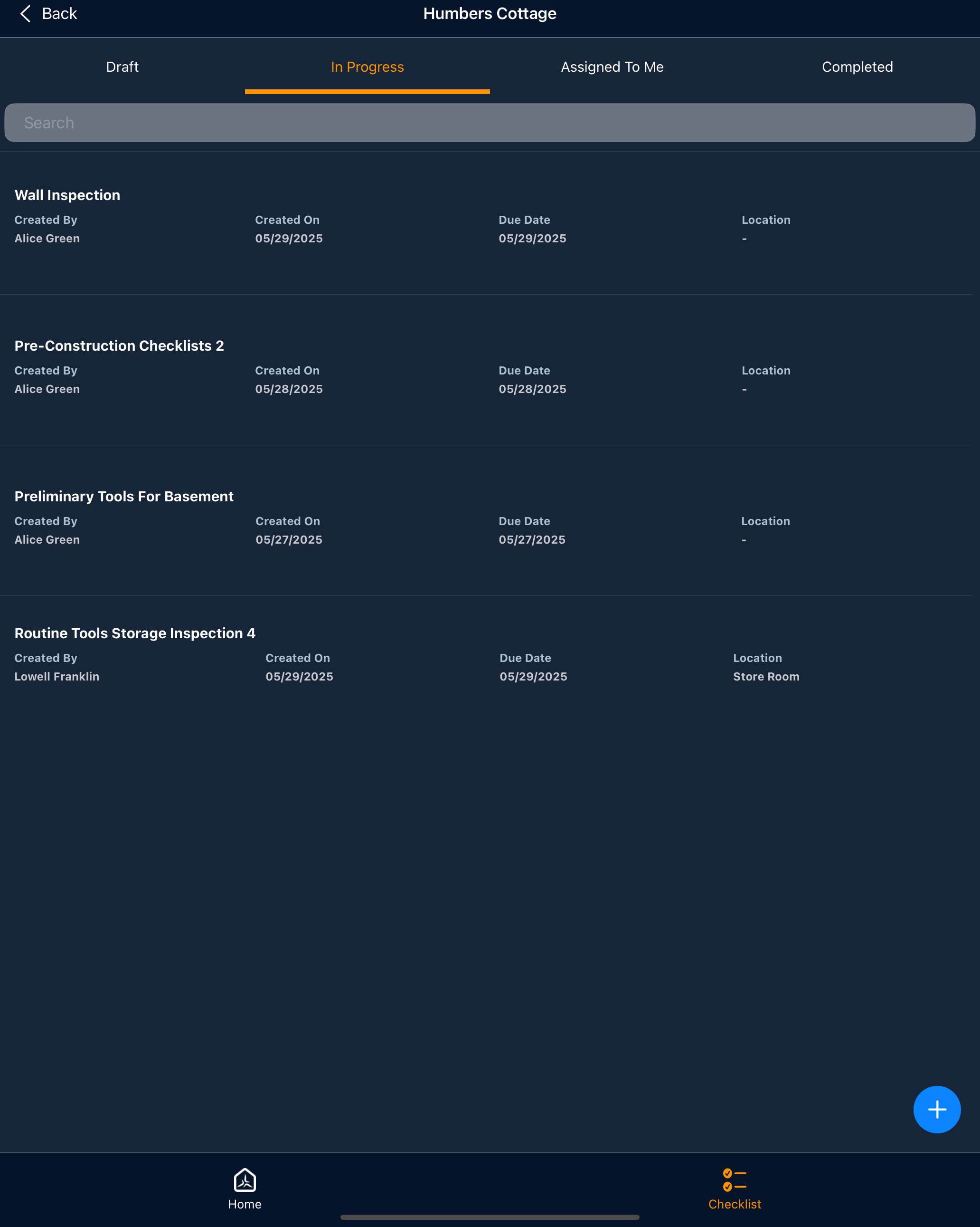 • In Progress - The checklists that are forwarded to the assignee and yet to be completed