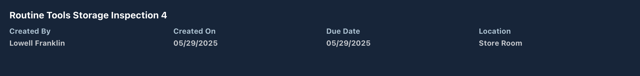 • Created by - The individual responsible for managing and completing the assigned inspection or event.