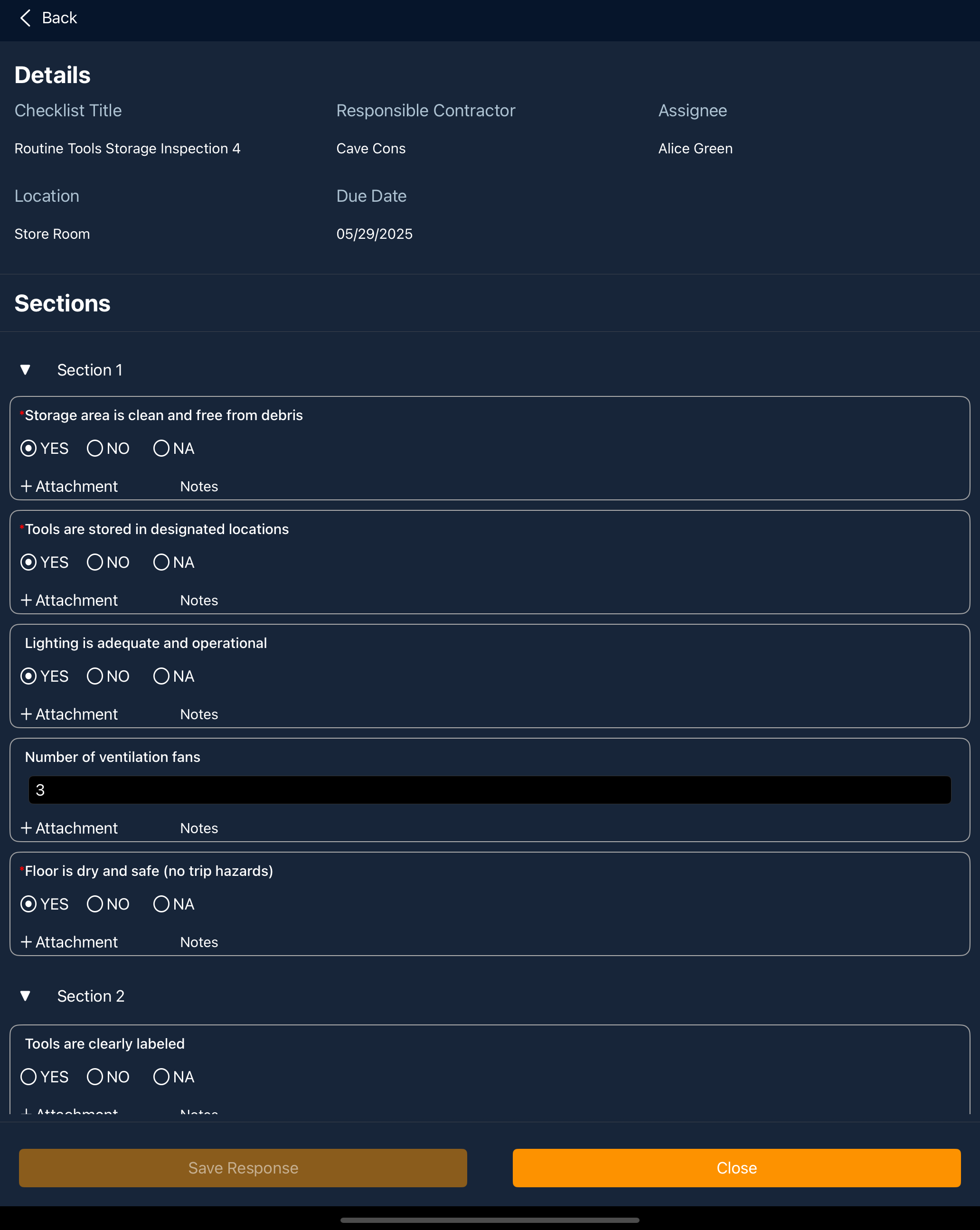 - Once all relevant items are completed, click "Save Response" to forward the checklist to the creator for review.