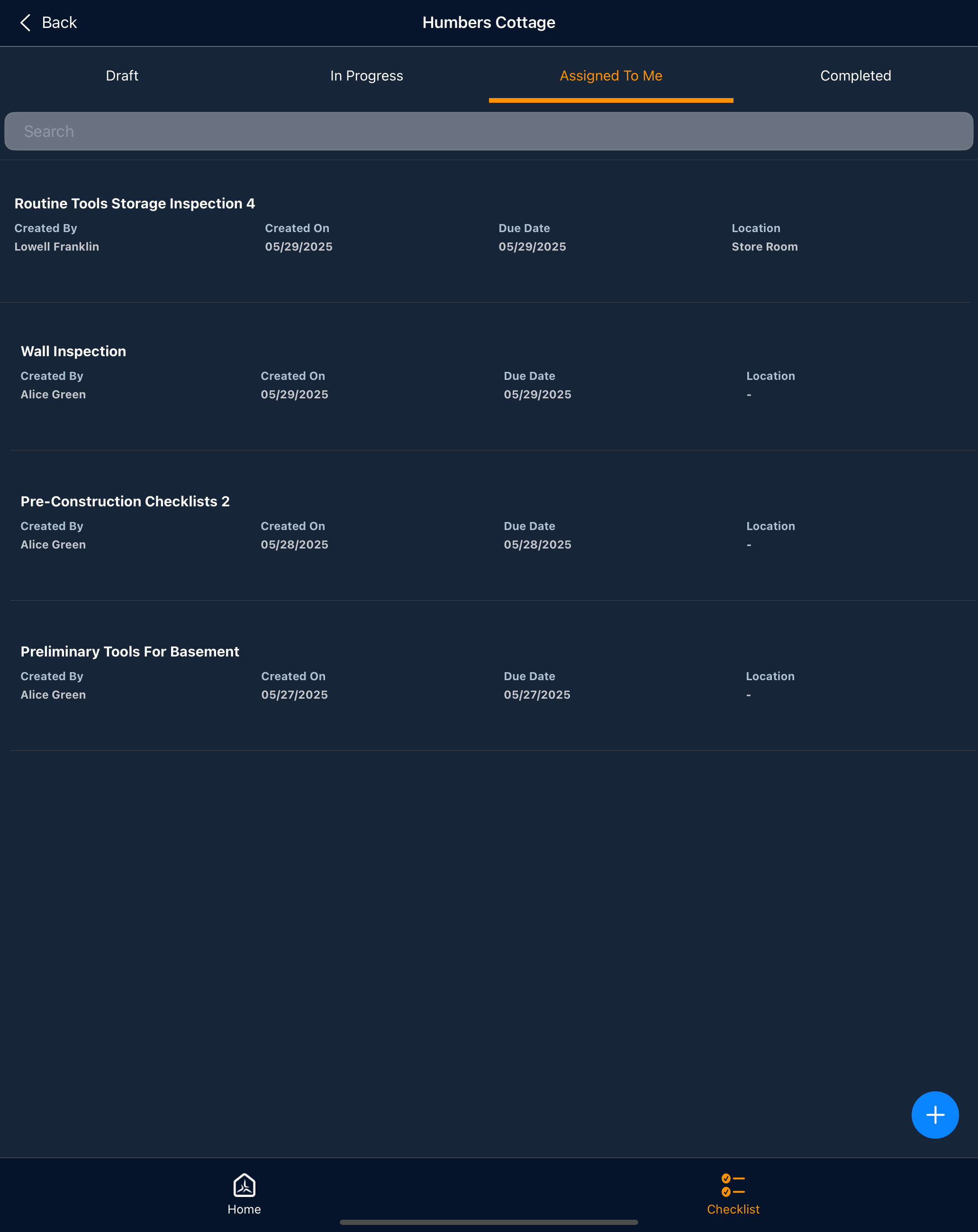 - Go to the 'Assigned to Me' tab and tap the tile to open the checklist