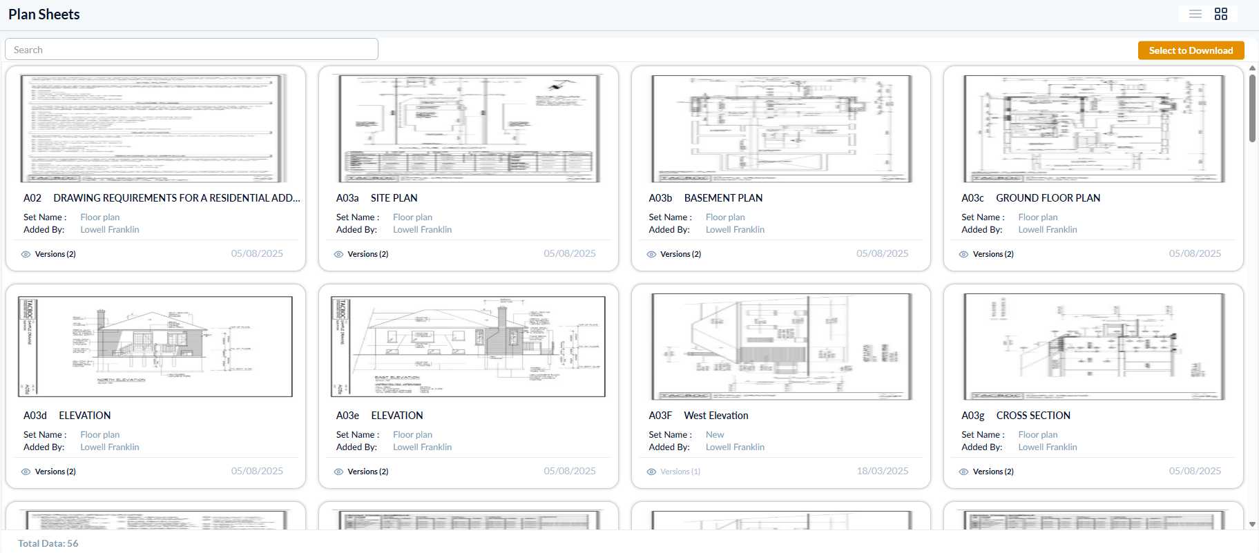 You can download the plan sheets from both the Grid and List views.