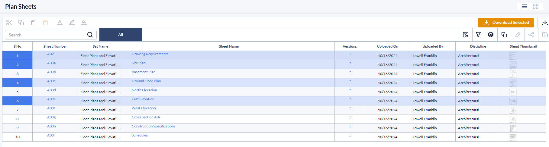 - Click the serial number of a plan sheet to select it