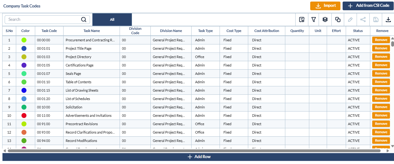 - Repeat the process to add more cost codes from the CSI MasterFormat.