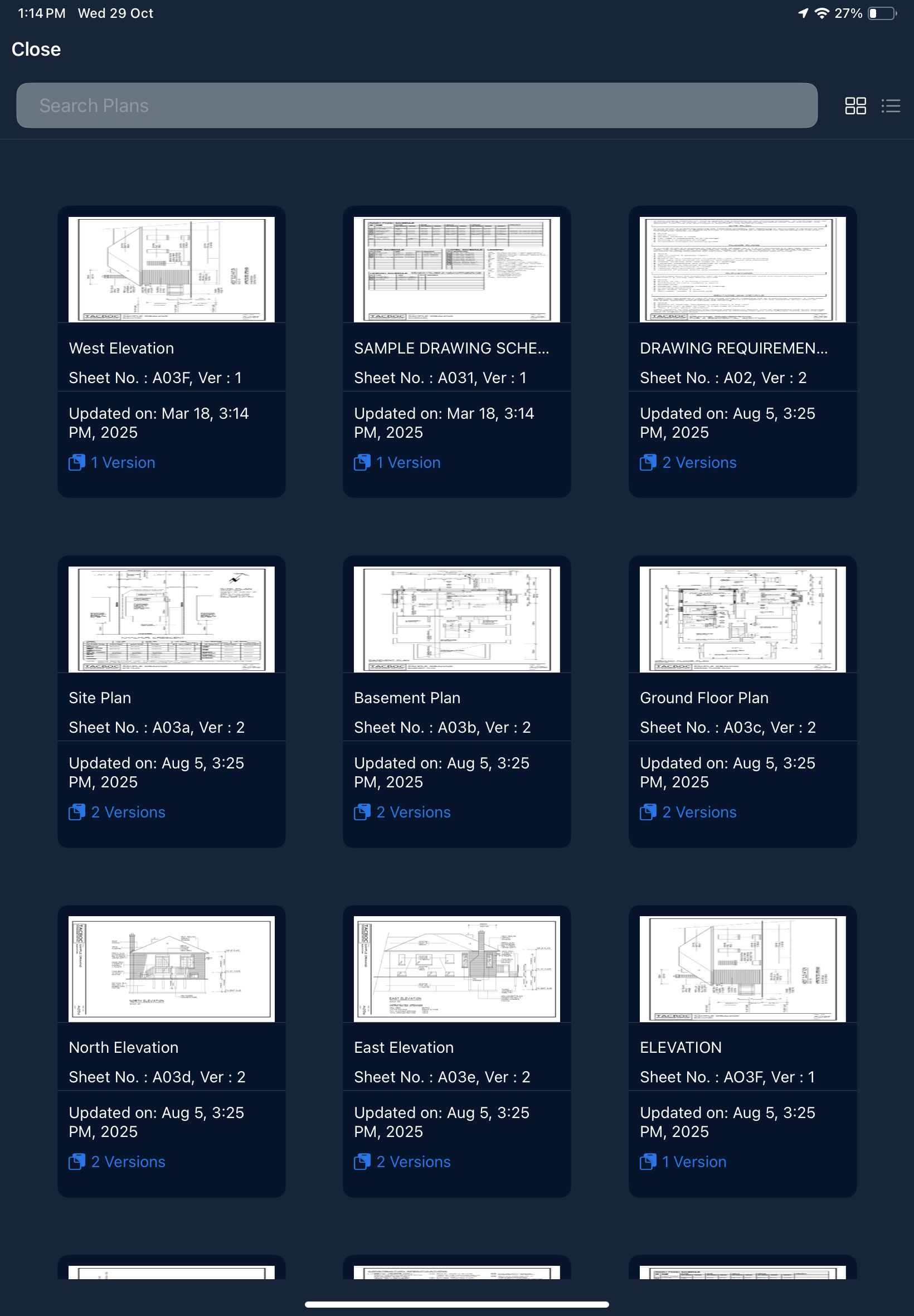 - Tap 'Version' in the thumbnail to choose a previous version of the plan sheet