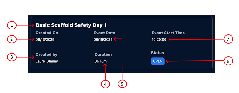 | 6 | - | The current status of the Toolbox talk event. The possible values are: