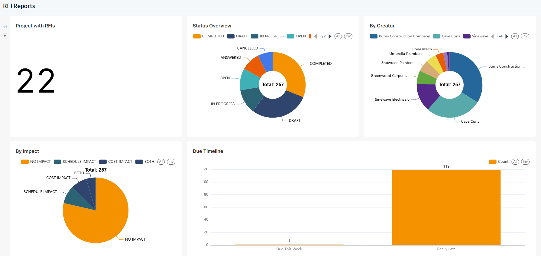 All charts are filtered to show only the statistics of RFIs that are in progress.