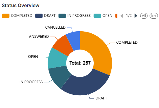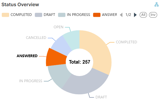 - Hover your mouse over a sector to view the number of RFIs in that status, along with their percentage share of the total RFIs.