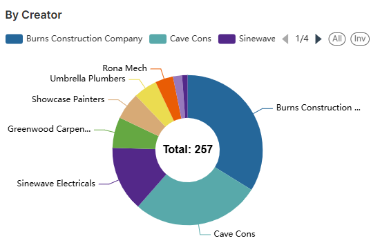 - Hover your mouse over a sector to view the number of RFIs created by that contractor, along with their percentage share of the total RFIs.