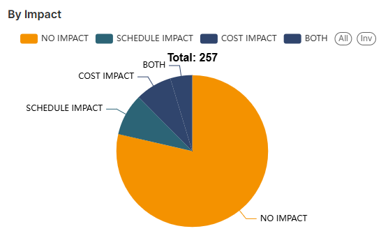 - Place your mouse over the bar to view the number of RFIs with their impact type and the percentage share of the total RFIs