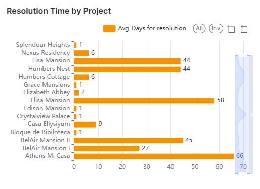 - The bar chart shows average resolution days for every project based on the resolved RFIs.