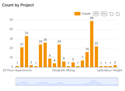 Place your mouse on a bar to view the number of RFIs in various statuses in that project.- See Zoom and Filtering Options to focus on particular data on the chart.