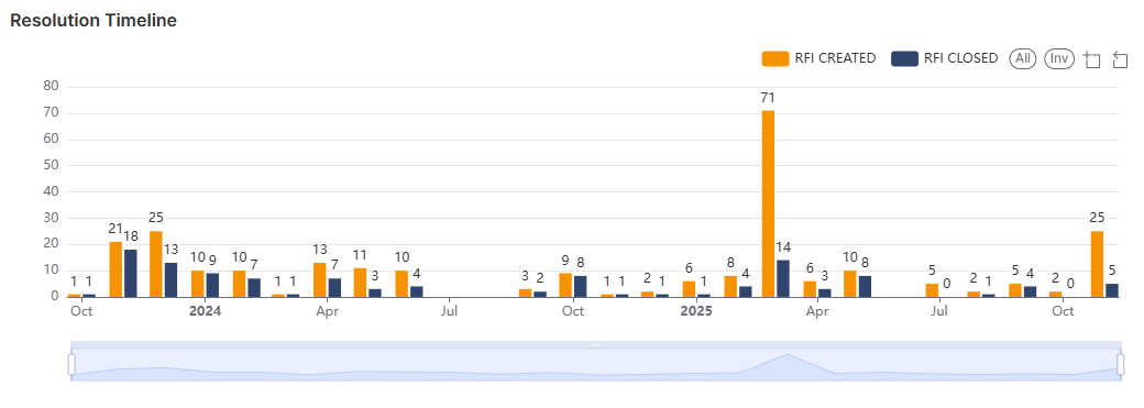 - Place your mouse over the bar to view the number of RFIs created or closed