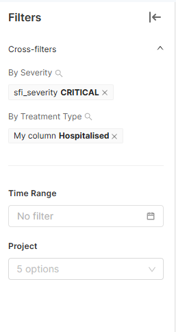 For example, if you want to view statistics of incidents that are in 'Critical' severity and require treatment from the hospital, you can cascade these two filters from the respective charts:
