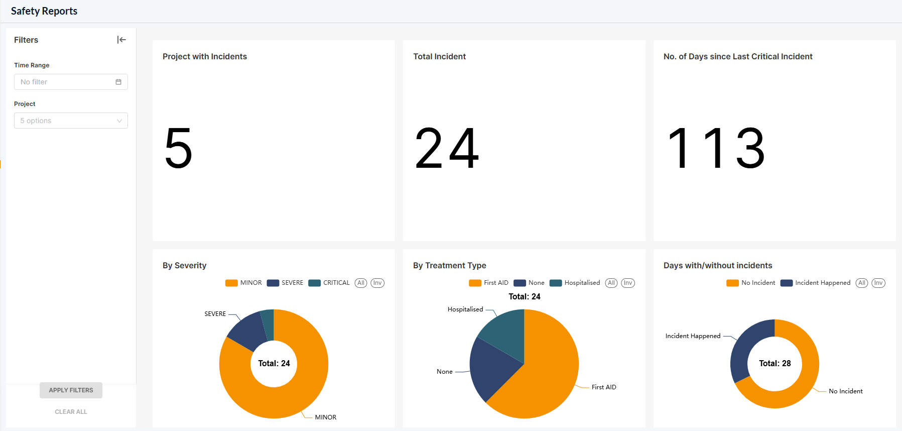 - Incident Count – The total number of safety incidents and accidents reported across all projects.