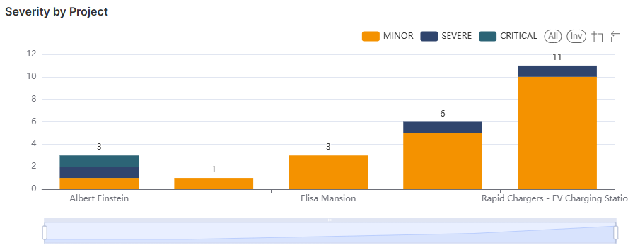 The bar chart shows the number of safety incidents reported for each project, with each bar further segmented by incident severity. This visual breakdown makes it easy to compare risk levels across projects and identify where critical issues are concentrated.
