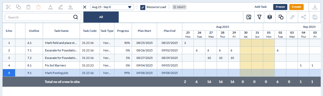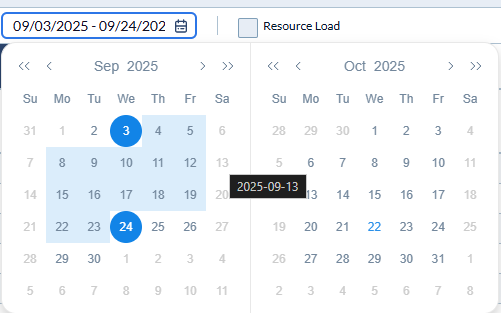 - Enable the 'Resource Load' checkbox to view the labor needed for each task on each day.