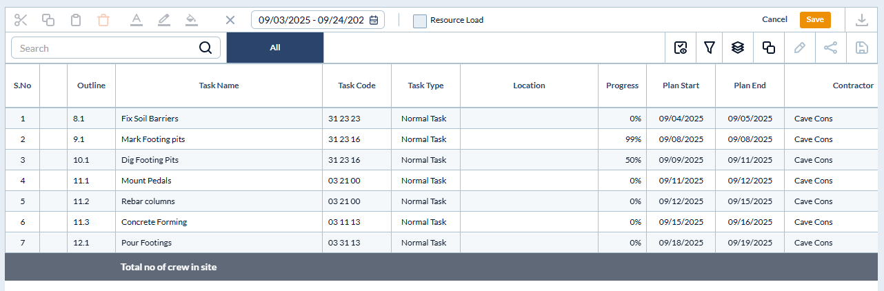 - Subcontractors/ Standalone contractors - Create and Access task schedules specific to their company within the chosen period from their contractor schedule.
