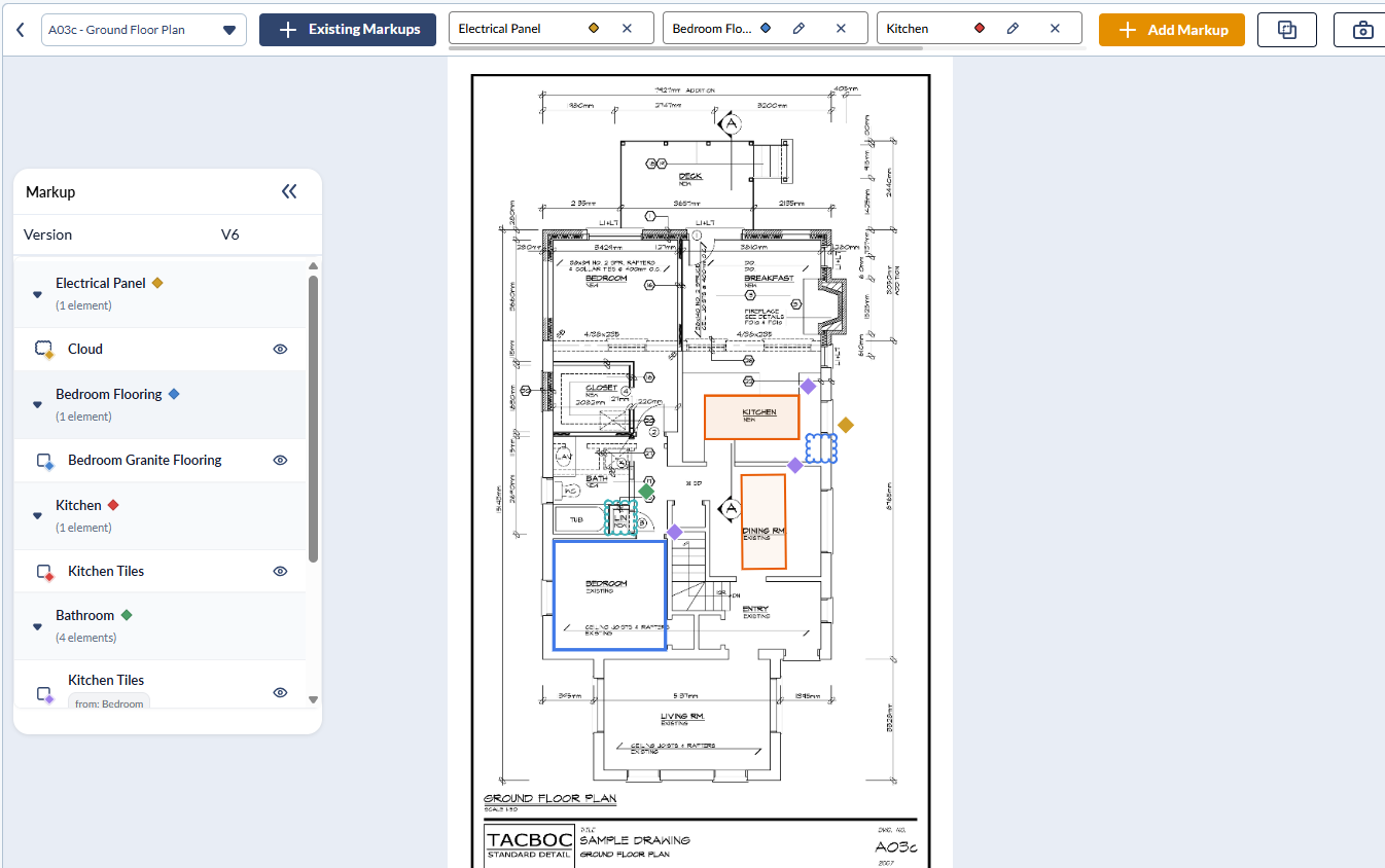 When working with multiple markups on a plan sheet, you may want to merge all visible markups along with your own new annotations into a single, consolidated markup. By ensuring the markups you want are visible, then adding your updates and saving them together, you can create a unified markup that’s easier to manage, share, and review. You can create a consolidated markup using: