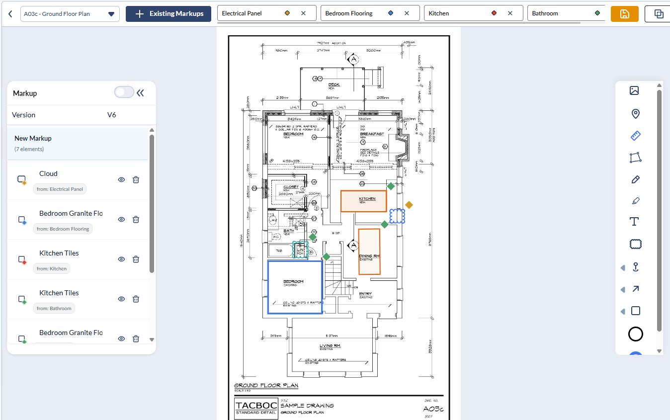 - Use the markup tools on the right to add new elements to the consolidated markup as needed. (See Add Markups on Plans to learn more.)