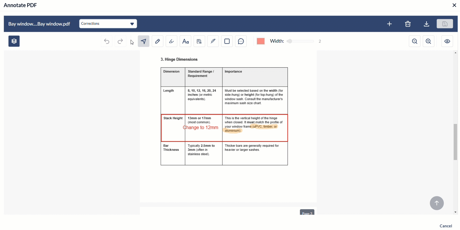 - Use the top drop-down menu to view different annotation sets on the PDF