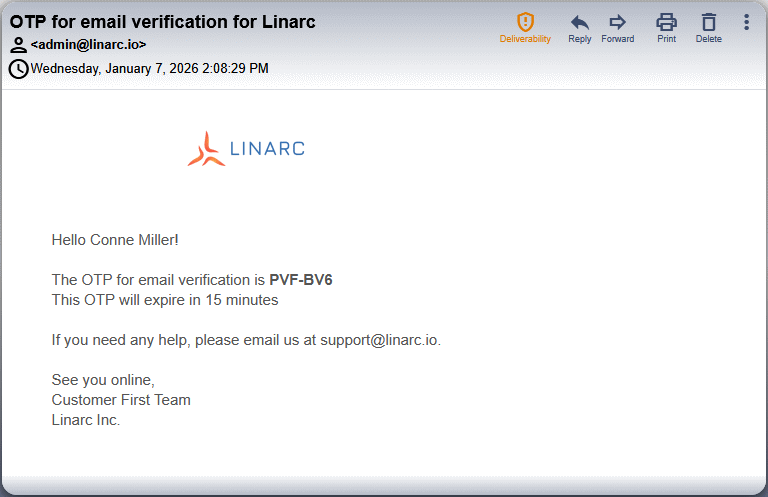 Your invitation email includes a "Request OTP" link. Once clicked, your one-time password will be sent simultaneously to: