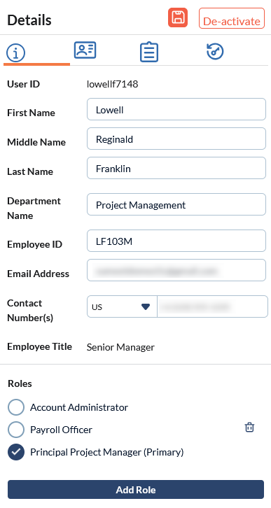 • Click an employee's name to open their details in the right pane.
