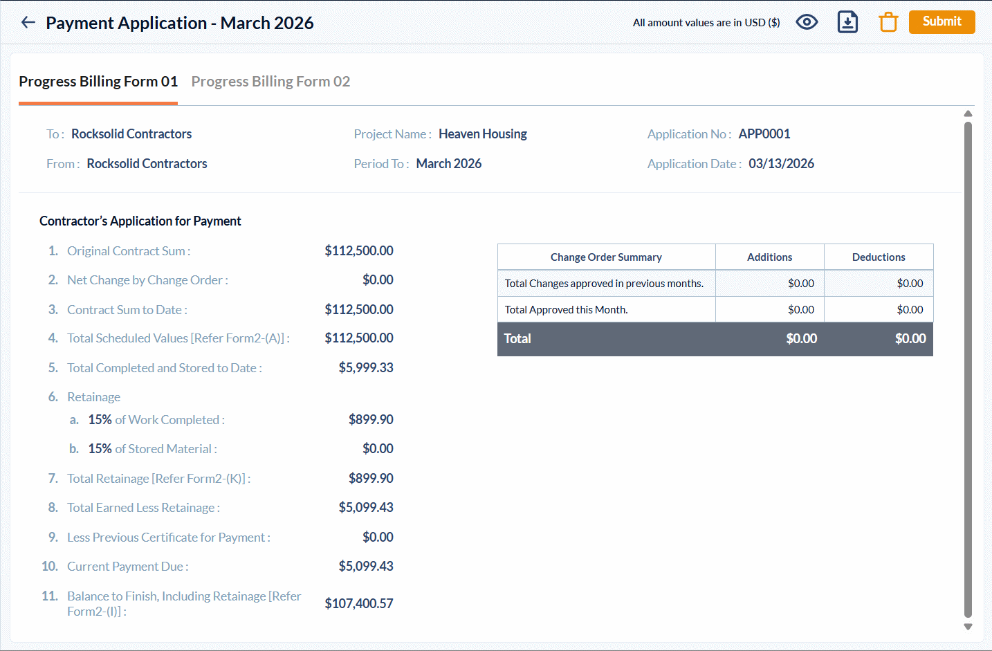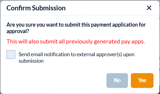 - Once marked as 'Submitted', the Pay App is officially closed and published, awaiting the paying party's approval. If a revision is requested, you can easily reopen the Pay App, make modifications, and resubmit it.