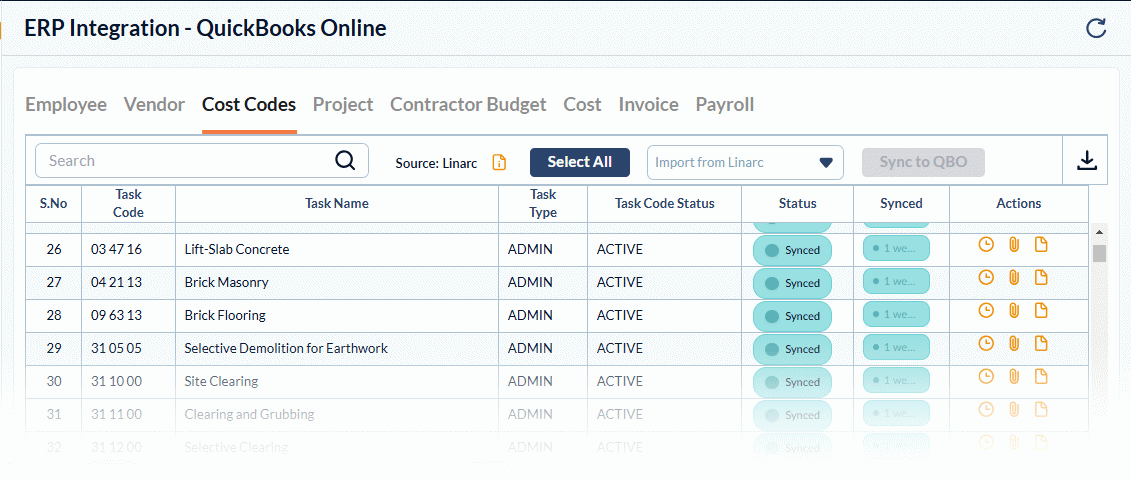 - Sync All Cost Codes from Linarc